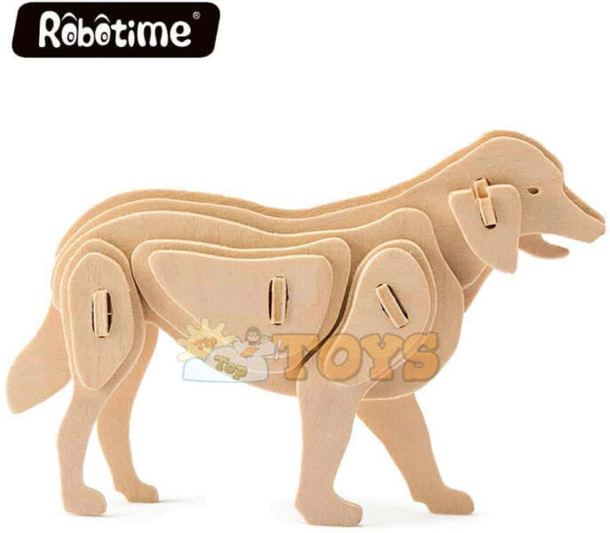 Háromdimenziós, befejezetlen fából készült kirakó, amely lehetővé teszi az egyes modellek színezését és színezését az egyik egy 3D fa puzzle nagy, kutyát ábrázol.