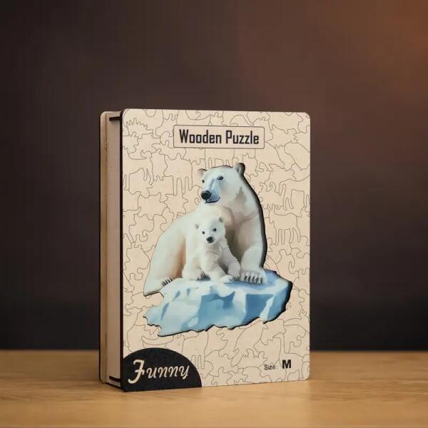 Sarki jegesmedve család fa puzzle L Prémium fa doboz