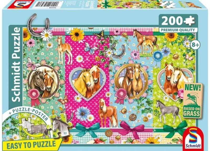 A lovak szerelmeseinek készült a Schmidt 200 db-os puzzle - Happy Horses (56538)  kirakó. A puzzle doboza egy kiváló minőségű posztert is tartalmaz, ami megkönnyítheti a kirakózást! Ráadásul ez a puzzle igazán környezetbarát választás, hiszen 40 százalékban fűből és 60 százalékban újrahasznosított papírból készült. Ezt az erőforrás-takarékos és fenntartható innovációt kifejezetten a német játék- és puzzlekiadó számára fejlesztették ki.