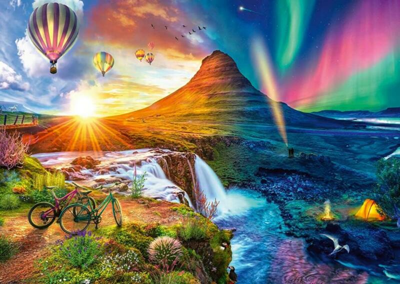 A Schmidt 1000 db-os puzzle - Night and Day - Iceland, Lars Stewart - a kirakott képen egy csodálatos montázst láthatunk.