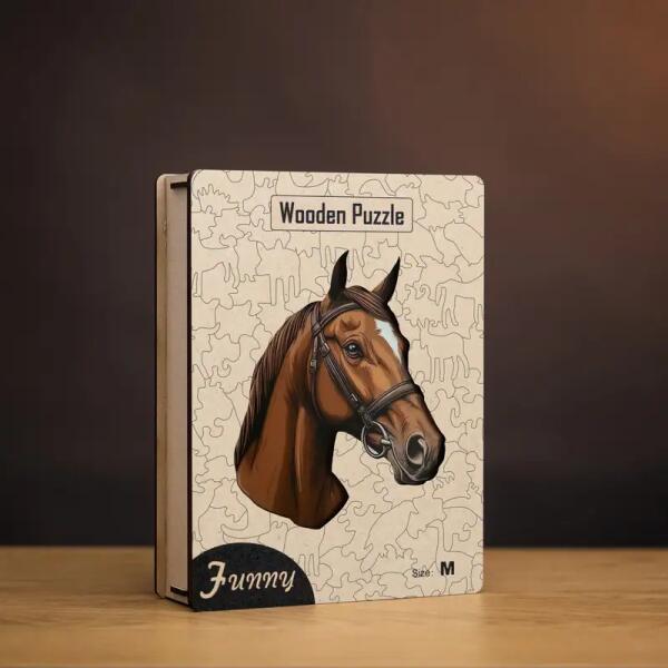 Szelíd ló fa puzzle L Prémium fa doboz