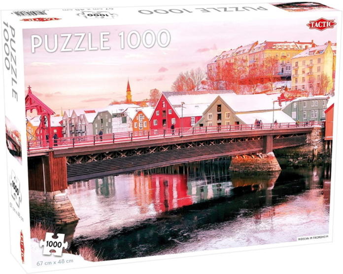 A finn Tactic Group társasjátékokat gyártó vállalat több mint ötven éve ismert innovatív, izgalmas és kiváló minőségű játékairól és kirakóiról, melyeket szerte a világon forgalmaznak. A Tactic  1000 db-os puzzle - A világ körül - A Nidelva folyó Trondheimban  című képén Trondheim városának élénk színű házai láthatók a Nidelva folyó partján.