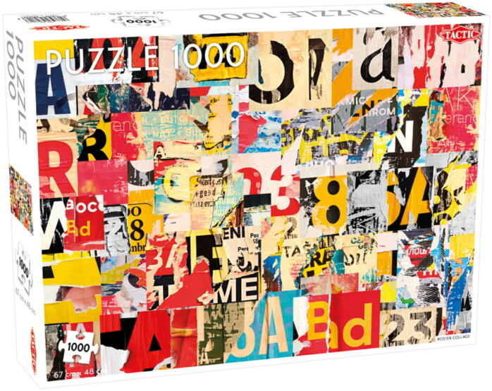 A finn Tactic Group társasjátékokat gyártó vállalat több mint ötven éve ismert innovatív, izgalmas és kiváló minőségű játékairól és kirakóiról, melyeket szerte a világon forgalmaznak. A Tactic  1000 db-os puzzle - Poszter kollázs  című képén poszterekből, újságokból kivágott darabokból álló, szuper kollázs látható.