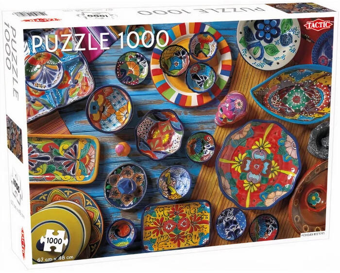 A finn Tactic Group társasjátékokat gyártó vállalat több mint ötven éve ismert innovatív, izgalmas és kiváló minőségű játékairól és kirakóiról, melyeket szerte a világon forgalmaznak. A Tactic 1000 db-os puzzle - Mexikói kerámiák című képén tradicionális, színes, Talavera cserépedények láthatók. Puzzle darabszáma: 1000 db Kép mérete: 670 x 480 mm 10 éves kortól ajánljuk.