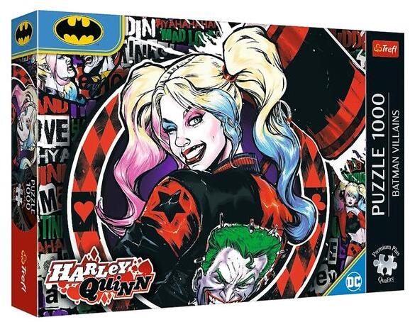 A Trefl  kirakók kiváló minőségű, speciális fényvisszaverő papír felhasználásával, ökológiai anyagból készülnek, amely megkönnyíti az összeillesztést. Trefl 1000 db-os Premium Plus puzzle - Batman - Harley Quinn (10837) Ez a 1000 darabos Premium Plus minőségű puzzle Harley Quinn karakterét ábrázolja, a Batman univerzumból. A puzzle részletesen bemutatja Harley Quinn jellegzetes, élénk színekkel és dinamikus pózban. A kiváló minőségű karton és precíz illeszkedés garantálja, hogy a darabok tökéletesen illeszkedjenek egymáshoz.
