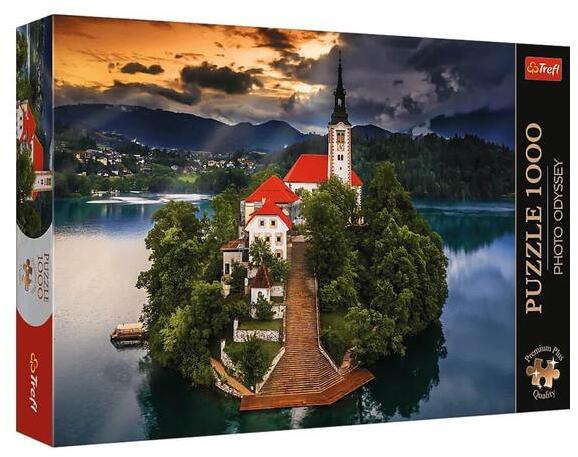 Az új Trefl Premium Plus Quality puzzle kolleció kirakói vastagabb kartonból készültek és darabjai egyedi formájúak. A sorozat két témakört kínál: az Odyssey , egyedülálló fotókat fedezhet fel, amelyek a világ különböző szegleteit mutatják be más szemszögből, egy érdekes stílusban. A Tea Time pedig egy idilli, festett sorozat, nosztalgikus karakterű képek, más stílusban bemutatva, mint az eddig megszokott Trefl Original kínálatában. A Trefl Premium Plus 1000-db-os puzzle - Odyssey - Bledi-tó, Szlovénia (10797)  nevű 1000 darabos kirakó egy olyan magas minőségű puzzle, amely a Trefl által készített prémium kategóriába tartozik. A 'Bledi-tó, Szlovénia' témája a gyönyörű Bledi-tóra és annak környékére utal, ami egy gyakran látogatott turisztikai hely Szlovéniában.