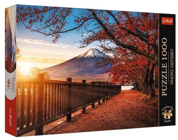 Az új Trefl Premium Plus Quality puzzle kolleció kirakói vastagabb kartonból készültek és darabjai egyedi formájúak. A sorozat két témakört kínál: az Odyssey , egyedülálló fotókat fedezhet fel, amelyek a világ különböző szegleteit mutatják be más szemszögből, egy érdekes stílusban. A Tea Time pedig egy idilli, festett sorozat, nosztalgikus karakterű képek, más stílusban bemutatva, mint az eddig megszokott Trefl Original kínálatában. A Trefl 1000-db-os Premium Plus puzzle - Odyssey - Mount Fuji, Japán (10817) című képen a hires Japán hegység látható a lemenő napfényben.