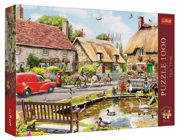 Az új Trefl Premium Plus Quality puzzle kolleció kirakói vastagabb kartonból készültek és darabjai egyedi formájúak. A sorozat két témakört kínál: az Odyssey , egyedülálló fotókat fedezhet fel, amelyek a világ különböző szegleteit mutatják be más szemszögből, egy érdekes stílusban. A Tea Time pedig egy idilli, festett sorozat, nosztalgikus karakterű képek, más stílusban bemutatva, mint az eddig megszokott Trefl Original kínálatában. A Trefl 1000-db-os Premium Plus puzzle - Tea Time - Nyár a városban (10808) című képen egy picike falucskába nyerhetünk betekitést, a mindennapi életből.