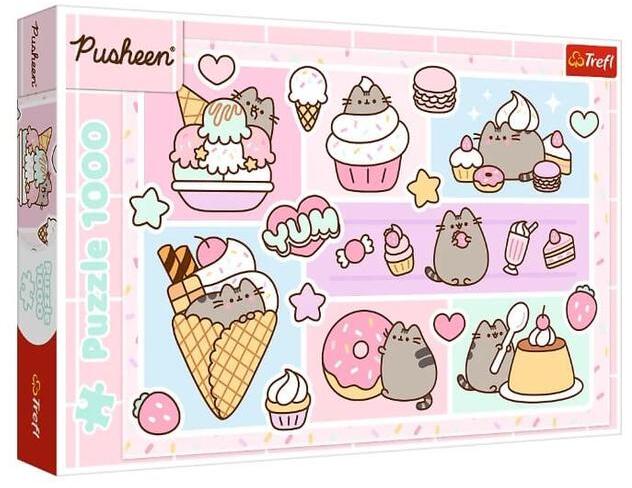 A Trefl  kirakók kiváló minőségű, speciális fényvisszaverő papír felhasználásával, ökológiai anyagból készülnek, amely megkönnyíti az összeillesztést. A Trefl 1000 db-os puzzle - Pusheen (10938)  kirakó képen Pusheen, a világszerte ismert, cuki szürke macska látható. Pusheen a jókedv, a lustálkodás és az édességek igazi rajongója, aki mindenkit mosolyra fakaszt.
