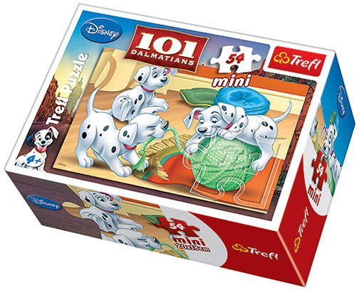 Walt Disney legismertebb kutyacsaládját, a 101 kiskutyát, és kalandjaikat megelevenítő 54 db-os miniatűr puzzle. Kirakott méretek: 20 x 13 cm. Tartozékok: 54 miniatűr mozaikdarab