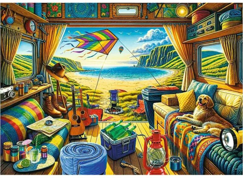 Az új Trefl Premium Plus Quality puzzle kolleció kirakói vastagabb kartonból készültek és darabjai egyedi formájúak. A sorozat két témakört kínál: az Odyssey , egyedülálló fotókat fedezhet fel, amelyek a világ különböző szegleteit mutatják be más szemszögből, egy érdekes stílusban. A Tea Time pedig egy idilli, festett sorozat, nosztalgikus karakterű képek, más stílusban bemutatva, mint az eddig megszokott Trefl Original kínálatában. A Trefl 1000-db-os Premium Plus puzzle - Tea Time - Lakóautós élet (10851) egy lenyűgöző kirakós játék, amely a szabadság és a kaland életérzését ragadja meg.