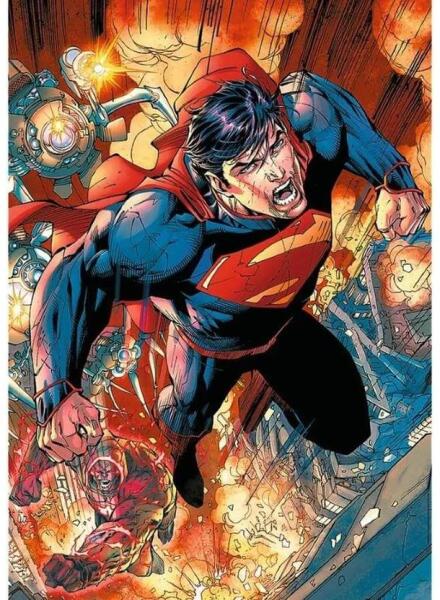 A Trefl 1000 db-os puzzle - Superman akcióban (10936)  kirakó képén a népszerű képregény-hőst láthatjuk klasszikus ábrázolásban.