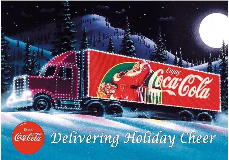 A klasszikus Coca-Cola kamion ünnepi díszben gördül hófödte tájon keresztül. A kép nosztalgikus és karácsonyi hangulatú. Hangolódj az ünnepekre a Trefl 10941 - Coca-Cola - Karácsonyi kamion - 1000 db-os puzzle  kirakóval!