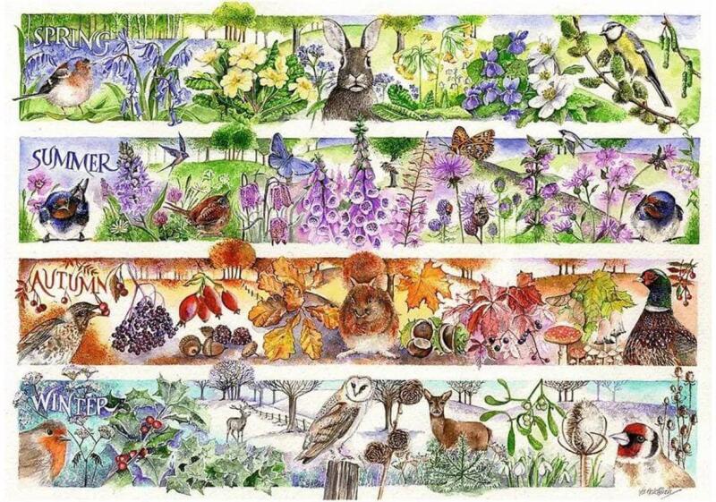 A természet és az élővilág kedvelőinek készült ez az 1000 darabos Premium Plus minőségű puzzle. A Trefl 1000 db-os Premium Plus puzzle - Tea Time - Négy évszak (12078)  kirakó képén a négy évszak jellegzetességei jelennek meg: madarak, pillangók, vadak, szépséges virágok, fák, cserjék.