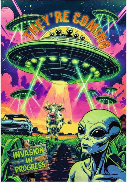 Akár vártad, akár nem, most már tényleg jönnek az idegenek! Fedezd fel a földönkívüliek titkait a Trefl 12129 - Hall of Horror - UFO - 1000 db-os Premium Plus puzzle vidám és vagány képével!