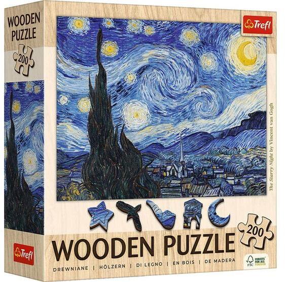 Trefl 200 db-os Wooden Contour Fa Puzzle - Van Gogh - Csillagos éj (20248) (20248)