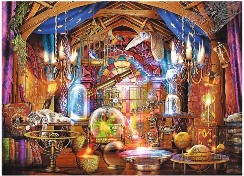 Misztikus hangulatú, részletgazdag kép egy varázsló titokzatos dolgozószobájáról. A Trefl 20210 - A varázsló szobája - 1000 db-os Wooden Puzzle  kirakó azonnal megigéz! A puzzle 100 egyedi formájú figurát is tartalmaz.