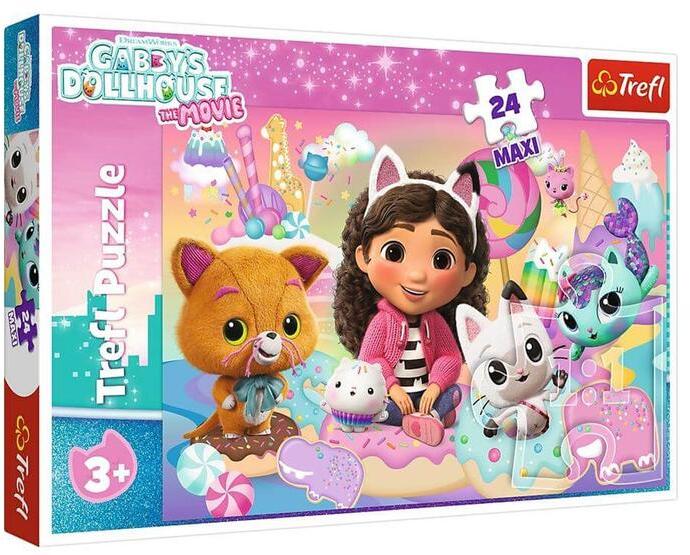 Gabi babaházának vidám jeleneteit ábrázolja a Trefl 24 db-os Maxi puzzle - Gabi babaháza (14381) színes és részletgazdag kirakó. Az extra nagy elemekből álló puzzle ideális választás a kisebbek számára.
