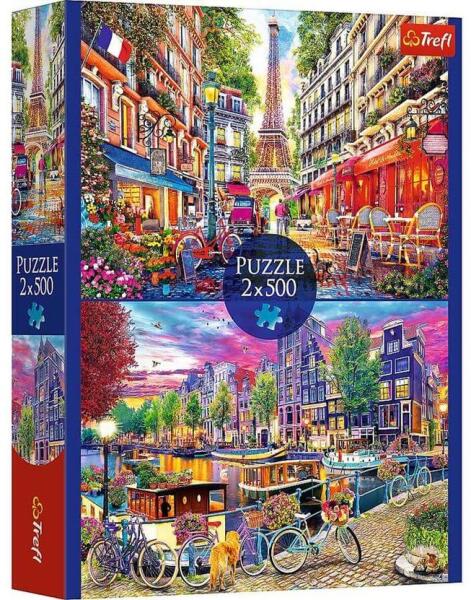 A Trefl  kirakók kiváló minőségű, speciális fényvisszaverő papír felhasználásával, ökológiai anyagból készülnek, amely megkönnyíti az összeillesztést. Trefl 2 x 500 db-os puzzle - European capitals (37496) , mely két különálló 500 darabos puzzle-t tartalmaz. Európa két fővásrosa látható a kirakós képein.