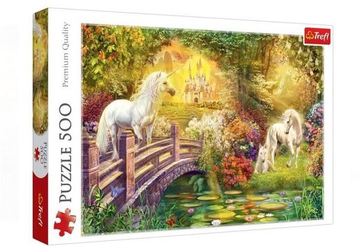 A Trefl  kirakók kiváló minőségű, speciális fényvisszaverő papír felhasználásával, ökológiai anyagból készülnek, amely megkönnyíti az összeillesztést.  A Trefl 500 db-os puzzle - Unikornisok (37489)  kirakó képen bájos unikornisok láthatók egy varázslatos, színes világban. A jelenet a fantázia és az álmok birodalmát idézi.