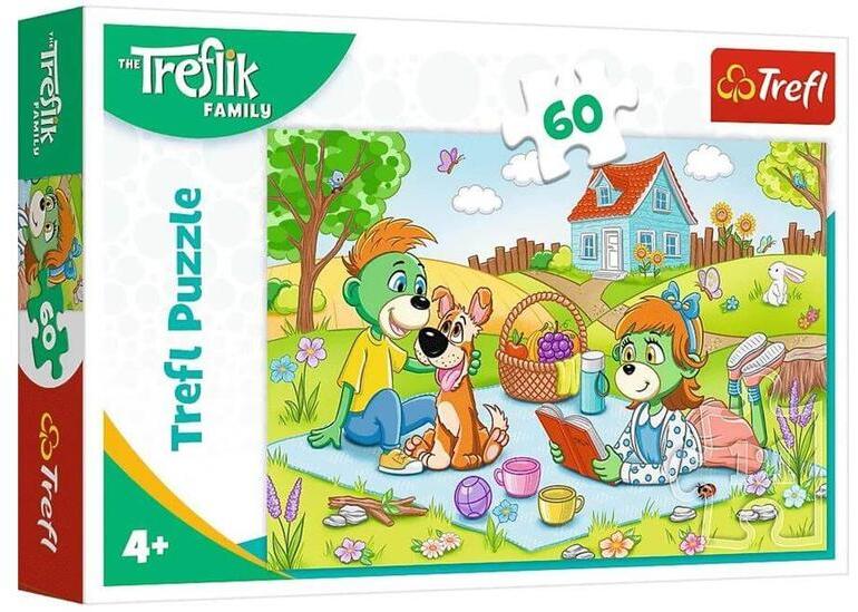 A Trefl 60 db-os puzzle - A Treflikow család kalandjai (17394)  már az egészen kicsik kedvencévé válhat. A kirakott képen a Treflikow család kedves figurái piknikeznek a kutyájukkal.