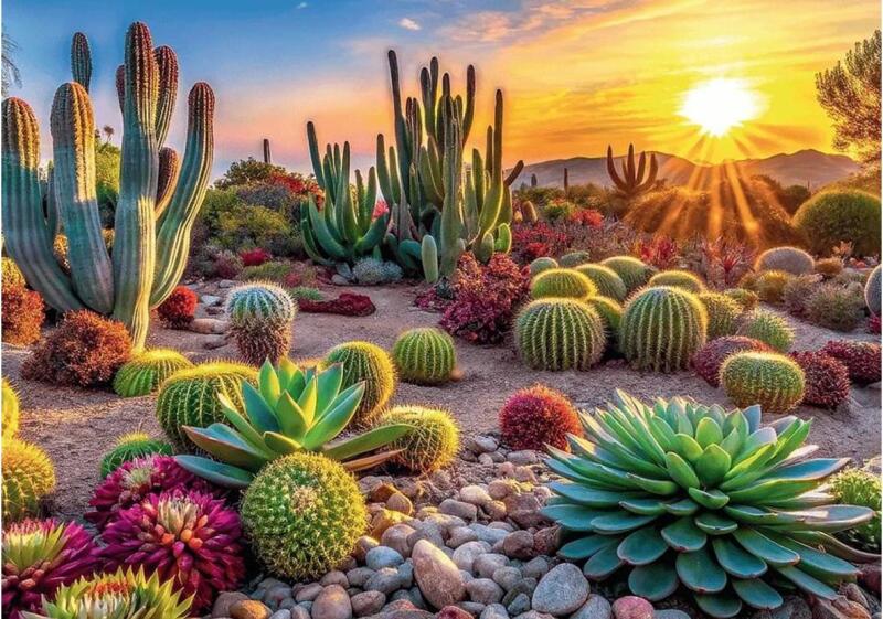Fedezd fel a sivatag színes és különleges növényvilágát! A Trefl 99296 - Sivatagi virágok - 1000 db-os puzzle minden darabja élénk és látványos.