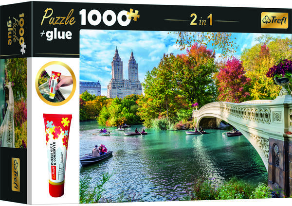 Az 1000 darabos puzzle + ragasztó egy készlet igazi puzzle rajongóknak! A termék New Yorkot ábrázolja ősszel. 2 az 1-ben készlet: puzzle + ragasztó. Vízbázisú folyékony ragasztó applikátorral akár négyezer összerakott puzzle darabot is tartósan ragaszt. A ragasztó nagyjából 1,5 m2-re elegendő, ami 4000 alkatrésznek felel meg. Űrtartalom 70 ml. Útmutató a ragasztó használatához:Helyezze a puzzle-t sima és szilárd felületre. Nyomja a szivacsot az összehajtott puzzle felső (kép) oldalára, és anélkül, hogy megemelné, egyenletesen oszlassa el a ragasztót a teljes felületen. Használat után öblítse le vízzel az applikátort, és hagyja megszáradni. A prémium minőséget megfelelő vastag karton, speciális nem tükröződő réteg és a puzzle darabok tökéletes illeszkedésével érjük el. A Trefl egy több éves hagyományokkal rendelkező cég a rejtvények és társasjátékok gyártásában. Cikkeit magas színvonal, törődés és sokrétű téma jellemzi. 12 éves kortól ajánlott. Az összerakott puzzle méretei kb. 68 x 48 cm.