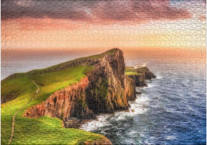 A Skye-sziget lenyűgöző hegyvidéki panorámája tárul elénk a naplemente varázslatos fényeiben. Gyönyörű zöldek, a zabolátlan tenger és egy világítótorony. Az Ulmer 0183 - Skye - 1000 db-os puzzle minden egyes darabját a természet finom részletei teszik különlegessé.