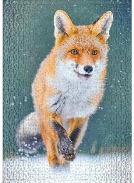 Szépséges róka a varázslatos, havas tájban. A részletek és a játékos színek minden darabot mesés élménnyé alakítanak az Ulmer 0800 - Off to the South - 1000 db-os puzzle képén.