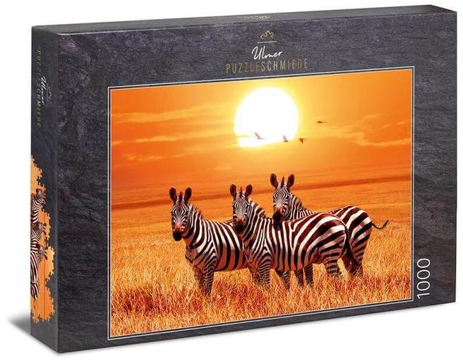 Az afrikai szavanna arany fényekben, zebrákkal és mesés színekkel. A hangulat és a részletek magával ragadnak az Ulmer 1000 db-os puzzle - Under the African Sun (0923) szépséges képén.