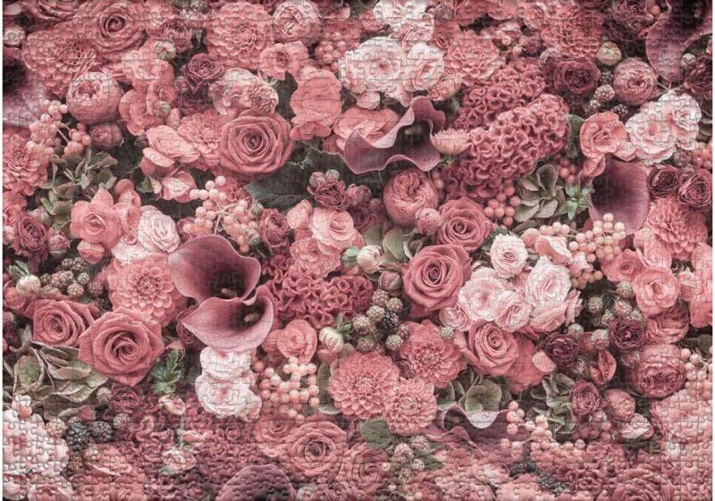 Rózsaszín árnyalatú virágok pompáznak az Ulmer 1043 - Rouge - 1000 db-os puzzle képén. Romantikus, meseszép kompozíció a virágok kedvelőinek.
