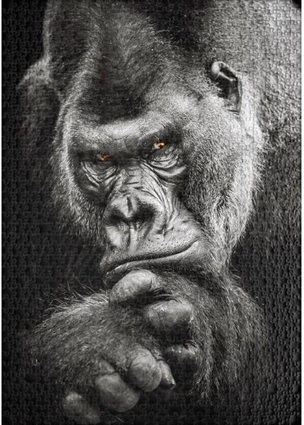 Hatalmas ezüsthátú gorilla részletes portréja elevenedik meg az Ulmer 1289 - Silverback - 1000 db-os puzzle képén. Izgalmas kihívás az állatok rajongóinak.