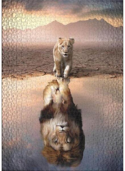 A valóság és a képzelet határai összemosódnak az Ulmer 1852 - Mirror, Mirror... - 2000 db-os puzzle képén. Tökéletes választás az oroszlánok és a kihívások szerelmeseinek.