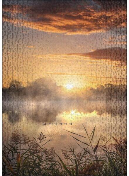 A nap első sugarai arany fényt vetnek a tájra, a békés tó is ébredezni kezd. Az Ulmer 3061 - Morning Hour - 1000 db-os puzzle az új kezdet szépségét mutatja be.