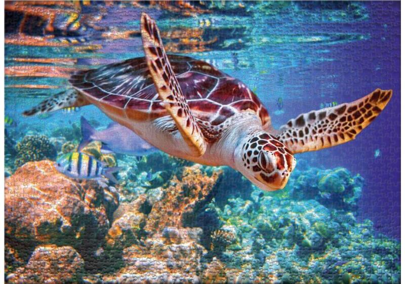 Merülj a tenger mélyére ezzel a fenséges tengeri teknőssel. Az Ulmer 3726 - Sea Turtle - 500 db-os puzzle képe végtelen békét és nyugalmat sugároz.