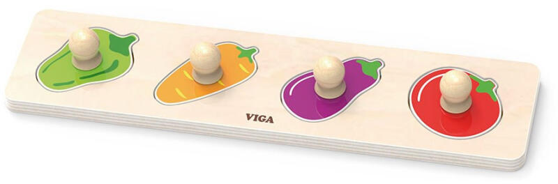 A Viga színes puzzle ideális játék, amely nemcsak hagyományos kirakóként szolgál, hanem lehetővé teszi gyermeke számára, hogy felfedezze a zöldségek színeit és formáit. A kirakós darabjai fából készült csapokkal vannak ellátva, amelyek segítségével a kisgyermek könnyedén a kezébe fogja a kirakót, és a megfelelő helyre helyezi azt a fa alapon. Az egész készlet bükkfából készült, és ártalmatlan, visszafogott színekkel festett festékekkel készült, amelyek felhívják a figyelmet és játékra ösztönöznek, miközben sok szórakozást nyújtanak. A készlet tartalmazza :