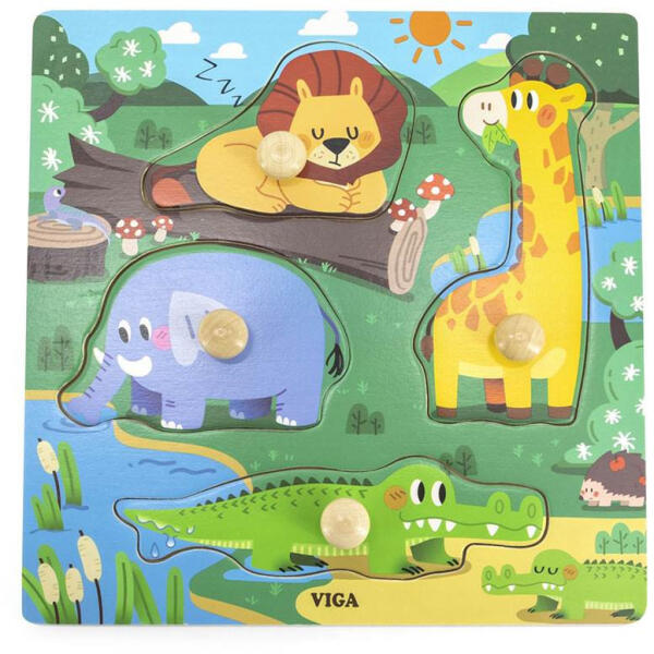 Gyermek fa puzzle Viga Vadon élő állatok 4 db