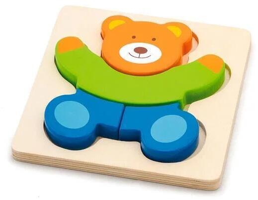 Magasított puzzle fajáték, mellyel egy macit rakhatnak ki a legkisebbek. A kimagasodó részeknek köszönhetően könnyebb a különböző darabokat a helyükre illeszteni.  A puzzle játék jó hatással van a kombinációs készségre, az emlékezetre, fejleszti a térlátást és a problémamegoldáshoz szükséges készségek elsajátítását.  Ezt a fa kirakót 2 éves kortól ajánljuk. A játék könnyen tisztítható.   Bővebben itt írtunk a kirakózás előnyeiről:  Puzzle - a népszerű kirakós játék .