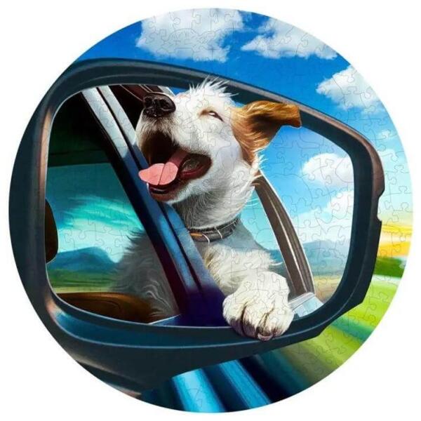 A 250 db-os kirakók 25 db egyedi formájú darabkát tartalmaznak az extra puzzle élményért. Az autó visszapillantó tükrében egy kutya tűnik fel, aki teli szívből mosolyog, élvezi az utazást. A Wooden City HE0305-L - Boldog kutya - 250 db-os fa puzzle örömet, hűséget és jókedvet sugároz.