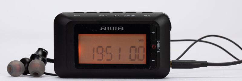 Aiwa RD-10 hordozható zsebrádió, FM RDS/MW rádió, automatikus állomáskereső, fülhallgatóval, LED kijelző