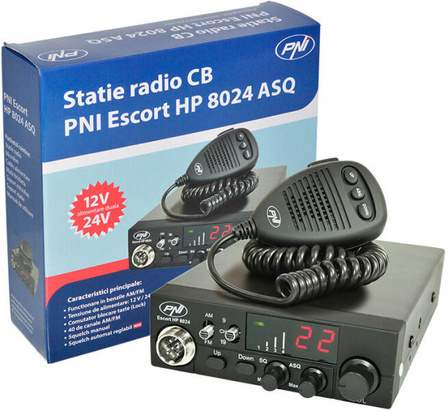 PNI Escort HP 8024 ASQ CB rádió 12V-24V tápellátás + PNI HF11 1 tűs fejhallgatóPepita.hu