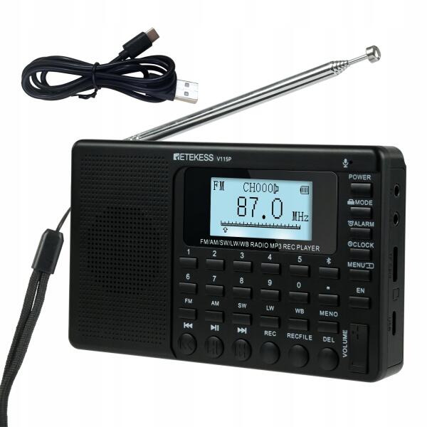 Retekess V115P Hordozható Rádió, Am Fm Sw, 1800 mAh akkumulátorral, vészhelyzeti lámpával (F9205D)