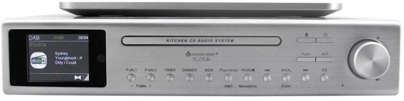 Rádió - klasszikus, konyhai, DAB+ és FM tuner 40 előre beállítható csatorna, MP3 formátum támogatás, 6 W teljesítmény, USB és 3,5 mm Jack bemenet, időzítő, Bluetooth, lejátszható formátumok CD, ébresztőóra, kijelző, óra és elemlámpa, távirányító a csomag része, hálózati tápellátás, klasszikus design, mérete 76 × 320 × 232 mm (Ma×Sz×Mé), tömege 0,8 kg, ezüst kivitel
