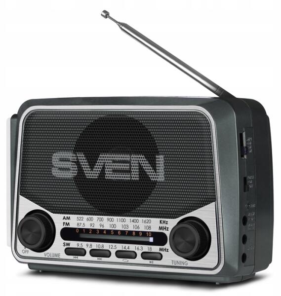 SVEN SRP-525 Grey Fm rádió Am Sw retro hordozható akkumulátoros vintage, LedALLEGRO