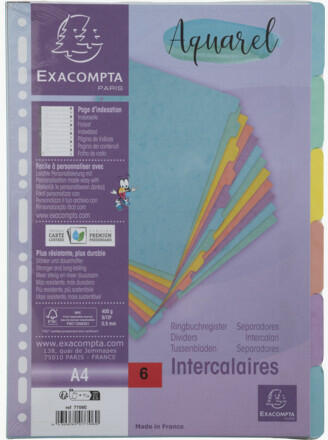Exacompta elválasztó lap, A4, 400g, pasztell színek, 6db/csomag Aquarel (7706E)