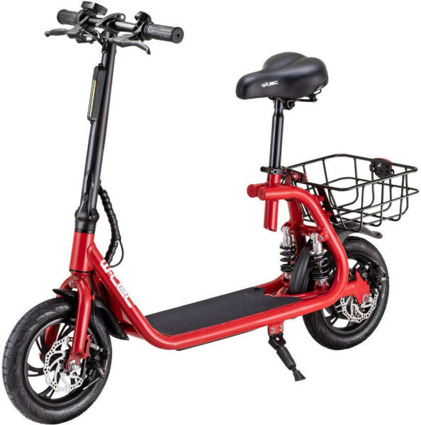 Elektromos Roller 12" kerekekkel, levehető üléssel és kosárral - Tökéletes városi közlekedésre! ? Ez az elektromos roller ideális választás a városban való közlekedésre, akár bevásárláshoz, akár munkába járáshoz. Kényelmes üléssel, praktikus kosárral és számos hasznos funkcióval van felszerelve, hogy minden utazásod gördülékenyen teljen. Főbb jellemzők:12 hüvelykes kerekek: Kényelmes és biztonságos vezetési élményt biztosítanak. Levehető ülés: Könnyen eltávolítható, ha nincs rá szükség. Praktikus kosár: Bevásárláshoz vagy egyéb dolgok szállításához ideális. Első lámpa: Jobb láthatóságot biztosít sötétben. Sárvédő: Védelmet nyújt az esőben való használat során. Összecsukható: Könnyű tárolás és szállítás. Kitámasztó láb: Stabil támaszt biztosít, ha le kell állni. Erős váz: Strapabíró és terhelhető (max. 120 kg). 30 km hatótávolság: Egyetlen feltöltéssel akár 30 km-t is megtehetsz. 25 km/h maximális sebesség: Gyors és hatékony közlekedés. Li-Ion 10Ah / 36V akkumulátor: Hosszú élettartamú és megbízható energiaforrás. Műszaki adatok:Jellemző ÉrtékMaximális teherbírás 120 kgAjánlott magasság 150 cmAkkumulátor Li-Ion 10Ah / 36VHatótávolság 30 kmMaximális sebesség 25 km/hMaximális emelkedés 7.20 °Súly 19 kgMotor teljesítménye 500 WKerekek mérete 12"Fékek TárcsafékVezérlés GázkarMéretek 1220 x 590 x 950 mmKerék típus FelfújhatóMotor típus KerékagyasMotor helye Hátsó kerékbenÉlvezd a kényelmes és biztonságos közlekedést ezzel a sokoldalú elektromos rollerrel!