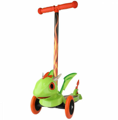 A roller nem csak a három kereke és a vagány színe miatt egyedi, hanem az elején kialakított sárkányfejes formája, illetve a kormányon lévő lángmintás díszítés miatt is biztos, hogy a gyerekek kedvence lesz.