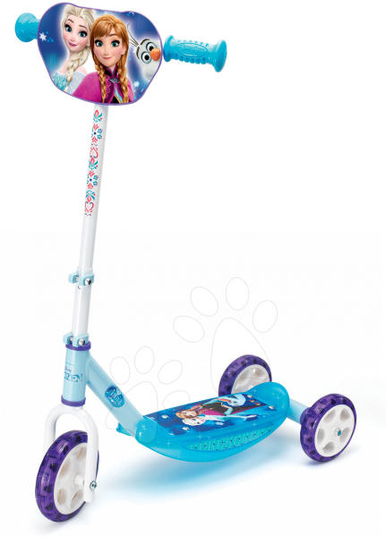 Gyerek háromkerekű roller Frozen Smoby minden kislány beteljesült álma 3 éves kortól. Hisz nincs a Földön olyan kislány, aki ne ismerné és szeretné a Jégvarázs mesét, mely ezrek szívét nyerte el világszerte. A tricikli külcsíne csodálatos akvamarínkék színben tündököl, kiegészítve Anna és Elza hercegnők képével, mely a roller kormányán kapott helyet. A roller nagyon jó állékonysággal rendelkezik köszönhetően a három halk és minőségi gumikeréknek, melyek könnyedén megbírkóznak az terep egyeletlenségével. A roller természetesen magasságilag állítható kormánnyal lett felszerelve, mely egészen 70 cm magasságig állítható, így együtt növekszik csemetéjével, alkalmazkodik igényeihez. Gyerek Jégvarázs roller minőségi gumi markolattal lett kialakítva, mely egyben csúszásmentes is. Teljes fémváz megbízhatóan elbánik az úttest egyeletlenségével és a zökkenőkkel, így kislánya biztonságosan tudja tovább folytatni majd az útját. A biztonságosabb rollerezés érdekében ajánlatos a  védőfelszerelés használa ta , elsősorban a térd-, csukló-, kӧnyӧkvédők és sisak alkalmazása, ami nagyon hasznos a legkisebbek esetében. Teljes méretei a rollernek 52*32*72 cm. Roller összcsukható és könnyen kezelhető, teljes tömege 2,2 kg. Smoby egy francia gyerekjátékokat gyártó vállalat, mely garantálja termékei minőségét és tartósságát az európai szabványoknak megfelelve. A  Smoby francia márka  garancia a minőségre, ezt fennmaradásának hosszú ideje is bizonyítja.