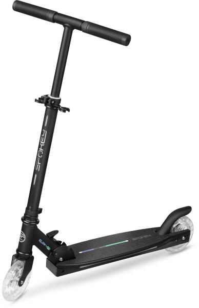 A Spokey GO GLOW rollere remek választás fiatal felhasználók számára, akik egyedi felszerelést keresnek a hobbi guruláshoz. A Go Glow modelll különbözik a többitől ebben a kategóriában, mert LED világítása van, amely lehetővé teszi a fény színének megváltoztatását. A 7 különböző világítási mód és az átlátszó világító kerekek megvilágítják az utat sötétedés után. A roller konstrukciója könnyű és egyben tartós. A csúszásmentes fellépő stabilitást biztosít, az állítható kormány pedig lehetővé teszi a gyermek vagy tinédzser egyéni igényeihez való igazítást, így a Go Glow együtt nő a tulajdonosával. Könnyű súlyának és összecsukhatóságának köszönhetően a roller könnyen szállítható és tárolható, így ideális megoldás a mindennapi játékhoz és kirándulásokhoz.