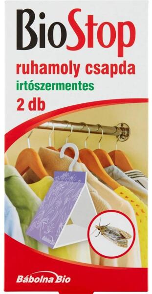 A ruhamolyok okozta kellemetlenségek könnyen, egyszerűen és tartósan megszüntethetők a Biostop ruhamolycsapdák segítségével, akár 10-12 héten keresztül. Az írtószermentes csapda hatékonyan és gyorsan összefogja és elpusztítja a kellemetlen betolakodókat. Szex feromont tartalmának köszönhetően akár 10-12 héten keresztül képes csökkenteni a kártevők szaporodását. Hosszantartó biztonságot nyújt a ruhamolyokkal szemben, miközben környezetbarát tulajdonságának köszönhetően nem jelent veszélyt környezetére.